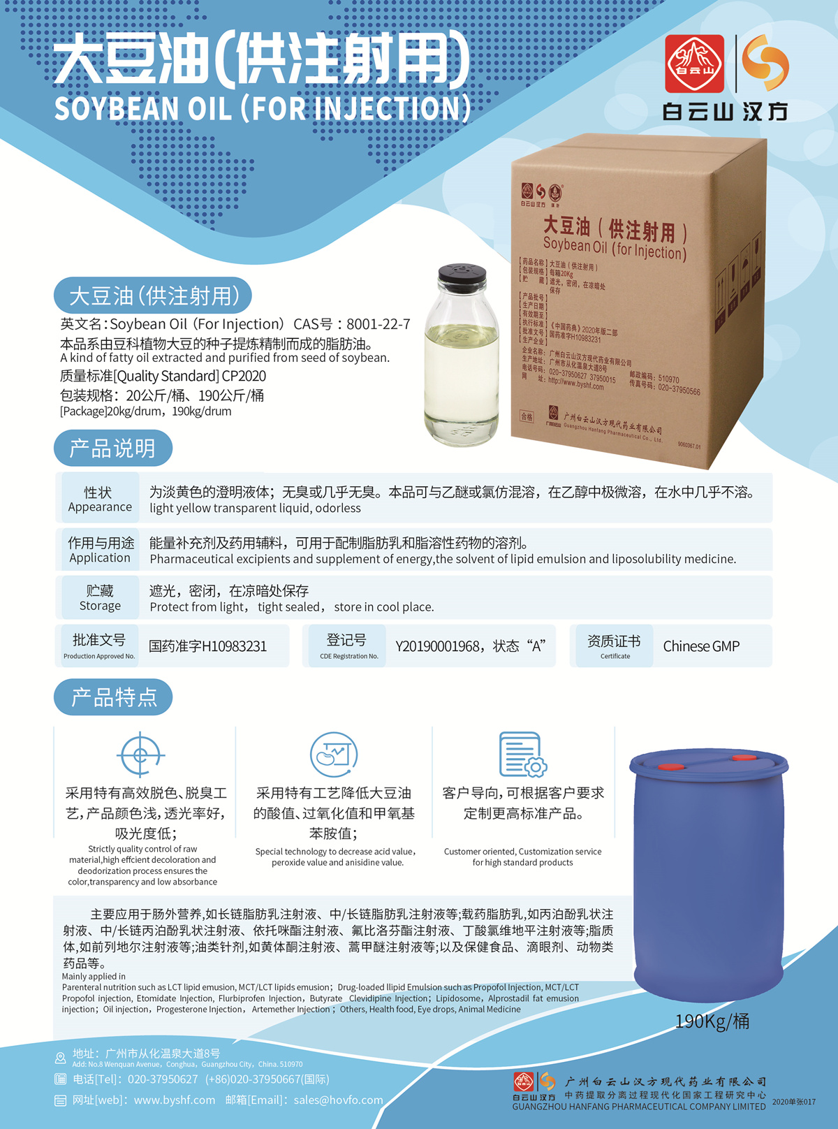 本品系由豆科植物大豆的種子提煉精制而成的脂肪油。