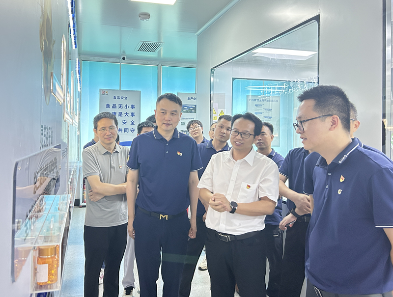 白云山漢方黨委副書(shū)記、總經(jīng)理許文東帶領(lǐng)雙一公司黨總支副書(shū)記、總經(jīng)理文歡一行實(shí)地參觀靈芝數(shù)字透明館。