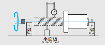 將測量儀器放在絲杠軸的支撐端上,在絲杠軸旋轉一次時讀取千分表上顯示的最大誤差。