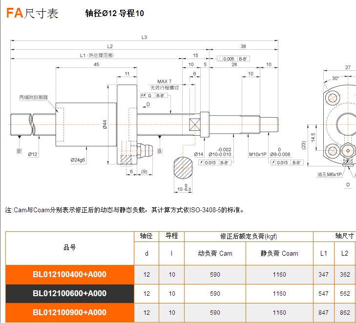 銀泰FA系列滾珠絲杠特性
