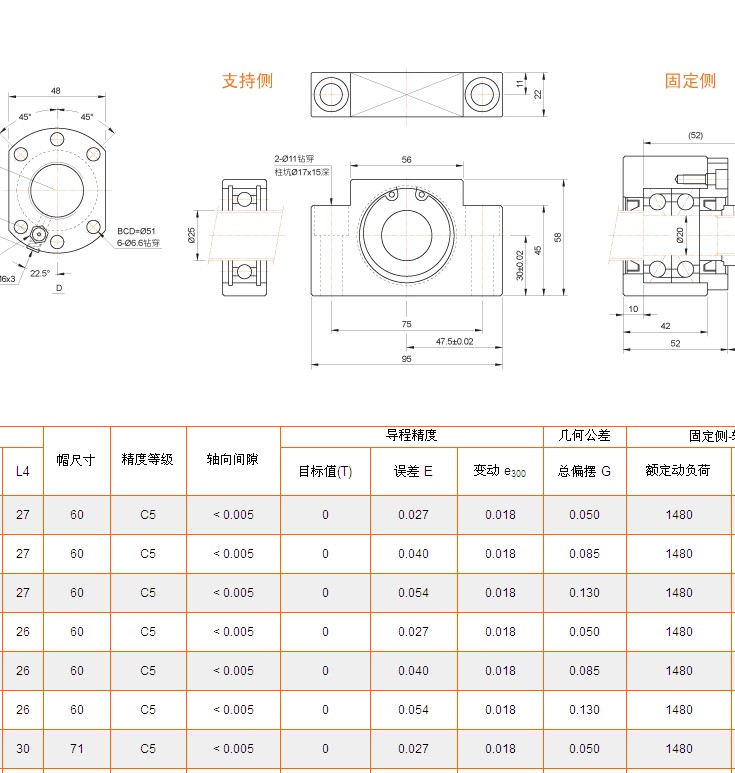 滾珠絲杠軸承為適應各種用途,提供了標準化種類繁多的產品。廣泛應用于機床,滾珠的循環方式有循環導管式、循環器式、端蓋式。預壓方式有定位預壓(雙螺母方式、位預壓方式)、定壓預壓。可根據用途選擇適當類型。絲桿有高精度研磨加工的精密滾珠絲杠(精度分為從CO-C7的6個等級)和經高精度冷軋加工成型的冷軋滾珠絲杠軸承(精度分為從C7-C10的3個等級)。另外,為應付用戶急需交貨的情況,還有已對軸端部進行了加工的成品,可自由對軸端部進行追加工的半成品及冷軋滾珠絲杠軸承。作為此軸承的周邊零部件,在使用所必要的絲杠支撐單元、螺母支座、鎖緊螺母等也已被標準化了,可供用戶選擇使用。