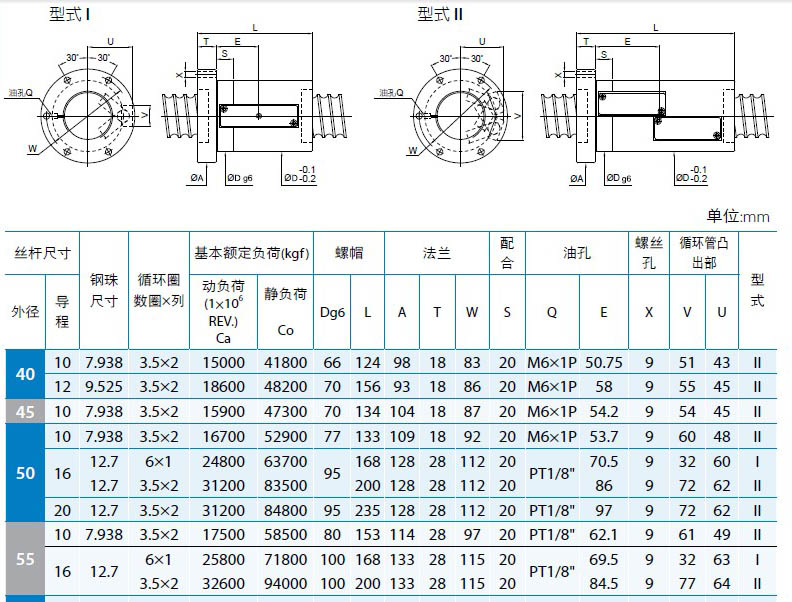 | PMI 可承制軸徑 ?50~?100 ,導程16~25之標準規格。(若有特殊規格需求,請與業務人員接洽) | |||